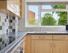 The principal reception room is bright and spacious, comfortably accommodating both a dining arrangement and seating area, and sits alongside a separate kitchen, thoughtfully configured in a functional ‘C’-shaped layout to optimise both workspace and storage. The accommodation is completed by two bedrooms and a fully tiled shower room, enhanced by a window providing natural ventilation.