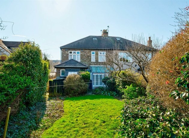 As you ascend to the first floor, you'll be greeted by a striking large leaded window flooding the entrance hall and landing with light, leading you to three well-proportioned bedrooms. One of the bedrooms is currently divided into two areas and features plumbing for a sink, offering potential for an en-suite addition. The family bathroom, located at the front of the home, retains what we believe to be the original fittings, with a charming deep windowsill and separate W.C located next door. Outside, the front garden offers year-round appeal, with a variety of mature plants providing a degree of privacy and scope to create off road parking. Side access leads to an expansive rear garden that is equally charming, featuring established greenery that could easily be woven into a new design, providing the perfect foundation for a stunning outdoor space.