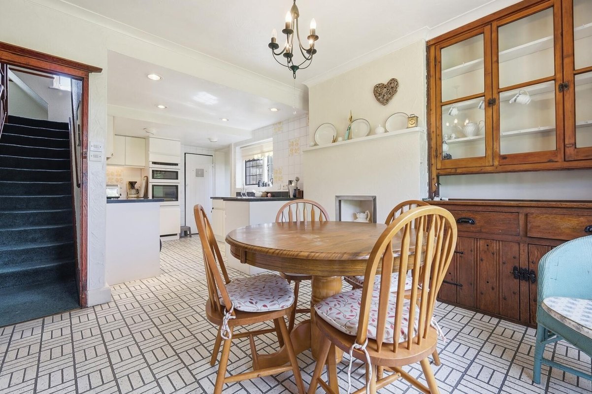 Despite its tranquille and leafy setting, the property is just 0.4 miles from Loughton High Street, offering an excellent selection of shops, cafés and restaurants, while Loughton Underground Station is only 0.9 miles away. Families are also well catered for, with Staples Road Primary School just 0.4 miles from the property. Boasting an enchanting ‘chocolate box’ frontage, this truly unique home exudes charm and warmth from the outset. Set on a wide plot, the property makes an immediate impression, enhanced by a double garage. Distinctive features such as leaded lights windows, mock Tudor panelling and a quaint porch combine beautifully, while the picket fence and delightful front garden further enhance its welcoming kerb appeal.