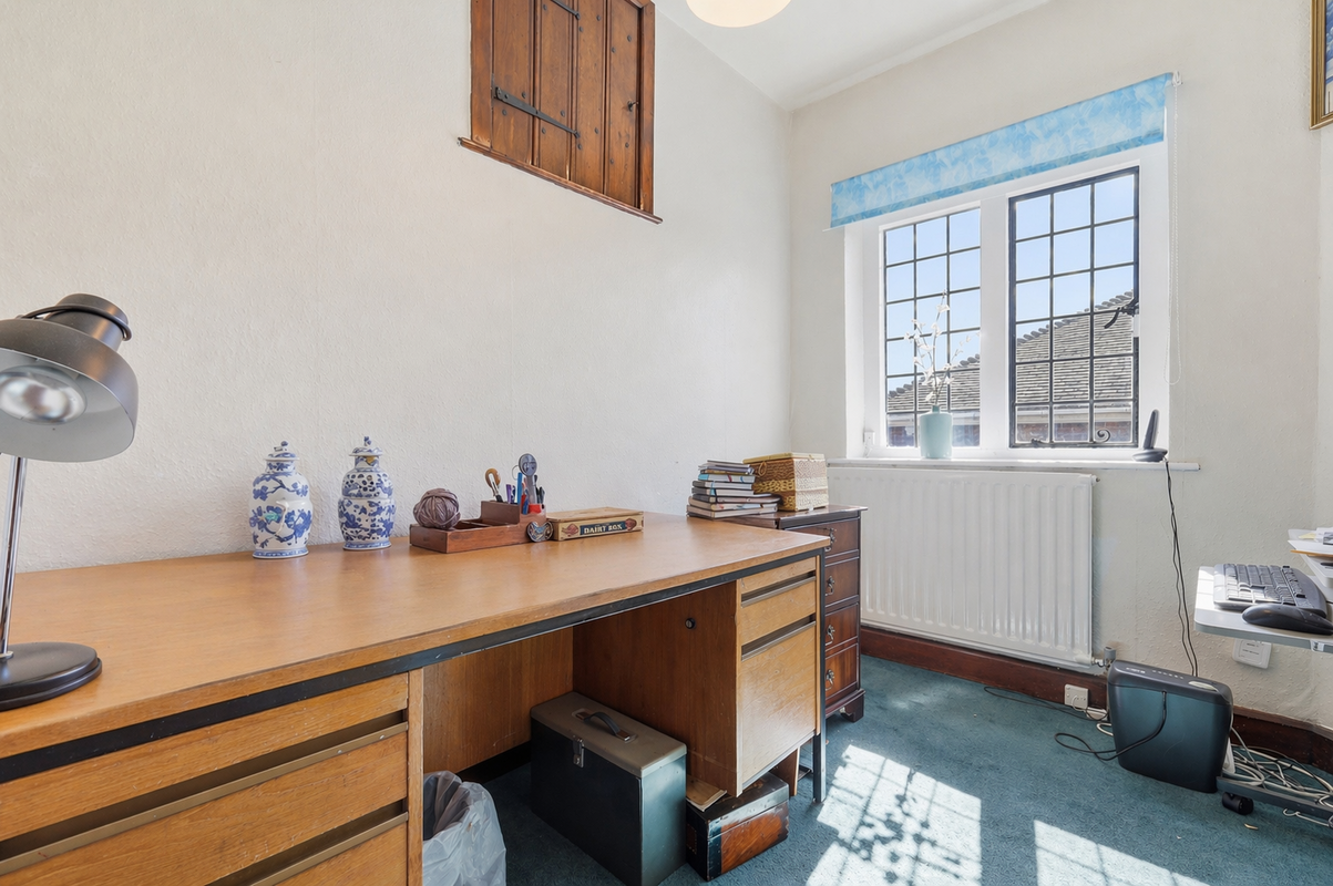 The home retains a wealth of original features, including charming wooden cabinetry and fireplaces, adding to its unique appeal. The rear garden is particularly impressive, notable for its exceptional width and sense of space, thanks to the positioning of the double garage. Beautifully maintained, it offers a superb combination of patio, manicured lawn and mature planting. The double garage provides excellent storage and also presents exciting potential for conversion, subject to the necessary planning permissions.