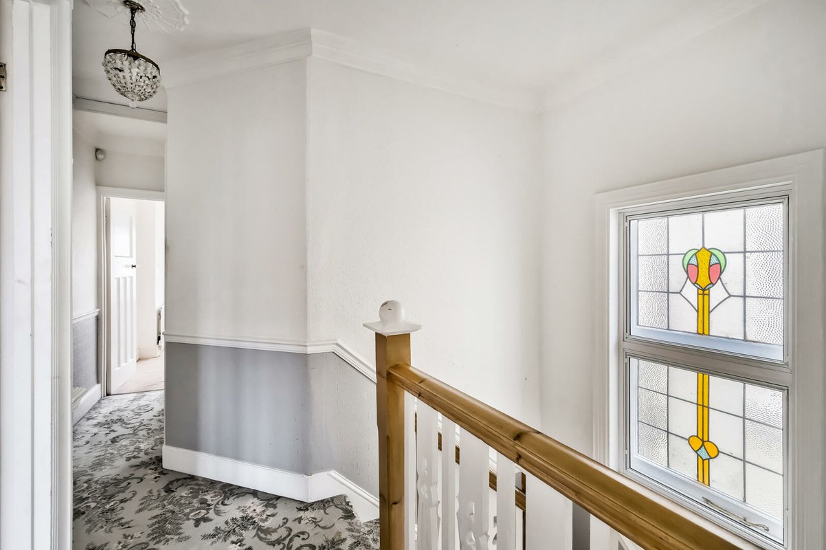 The home itself boasts an attractive double bay frontage with driveway parking, and while it would benefit from cosmetic modernisation, it retains a wealth of charming original features. These include beautiful stained-glass windows and an ornate banister with original spindles, adding character and potential for sympathetic updating.
