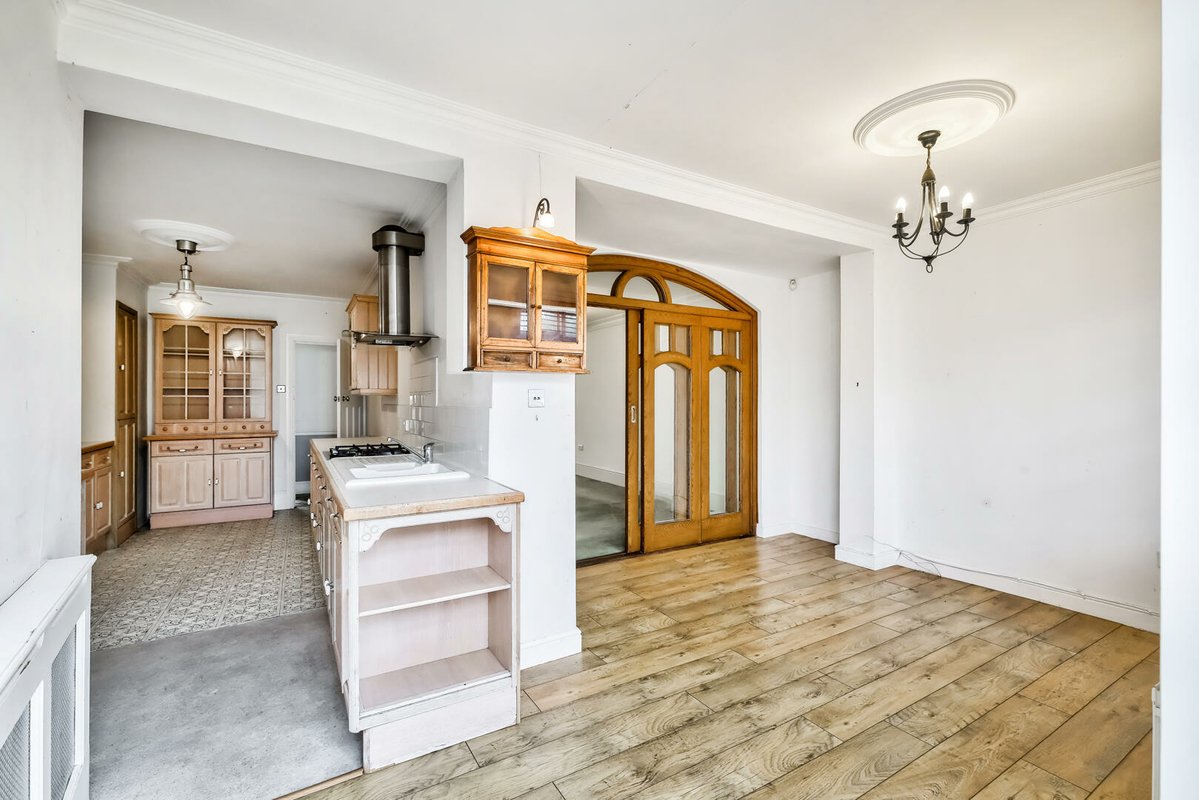 There is also a separate fitted kitchen. Subject to planning permission, the ground floor could be reconfigured to create a stunning open-plan kitchen/diner with a utility area.