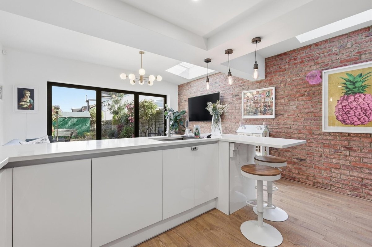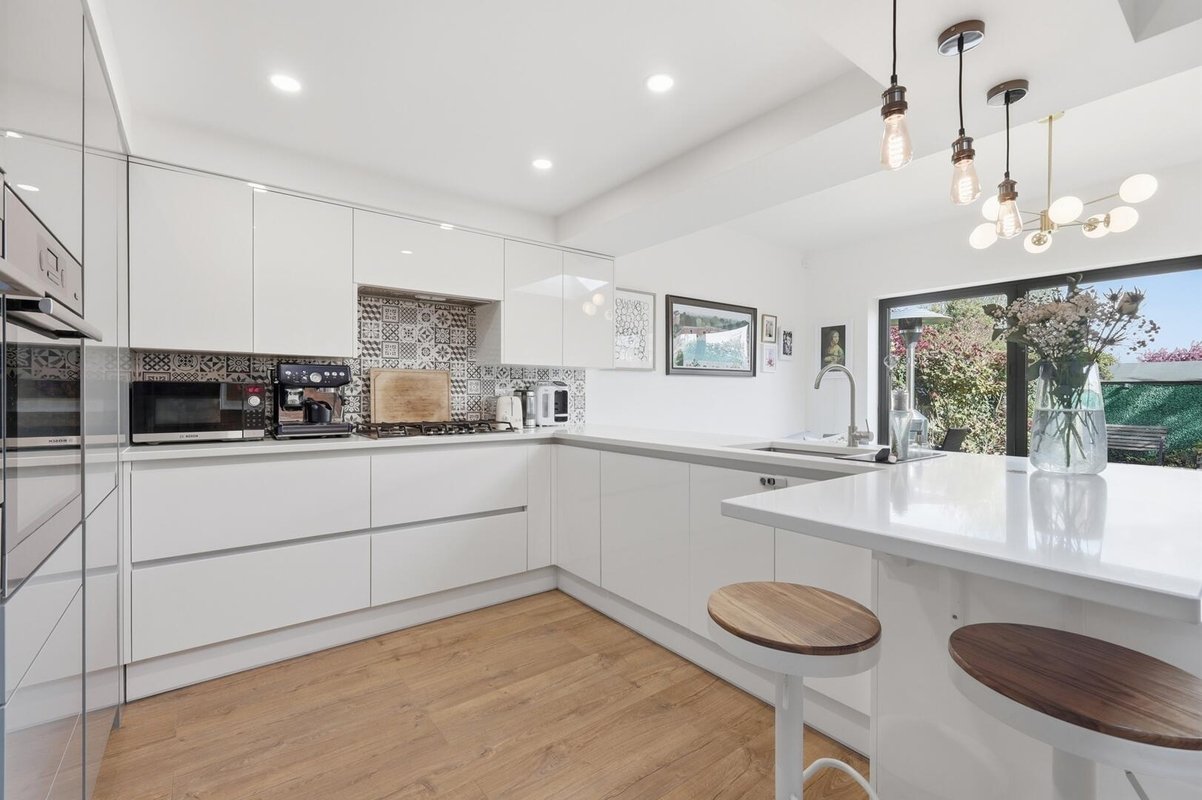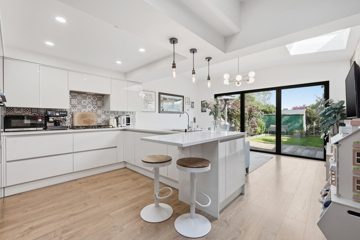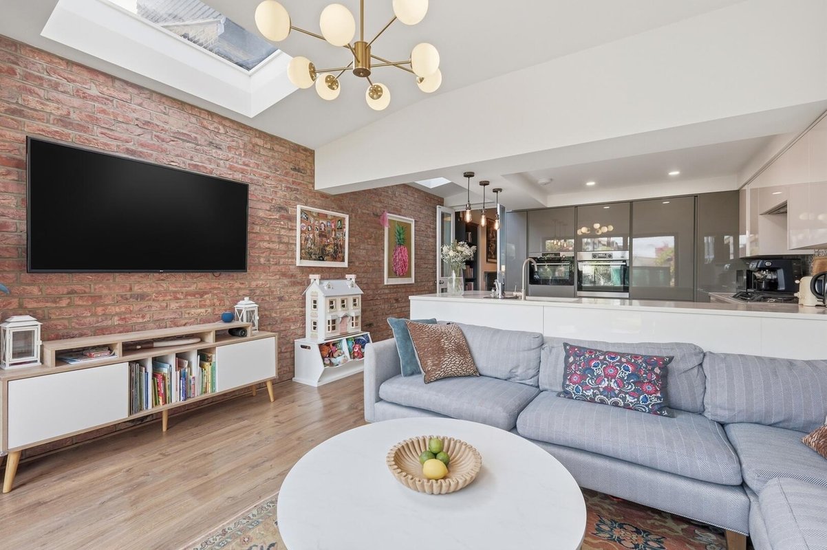 As you venture into the rear of the house you will discover the true heartbeat of the home with a stunning sitting area enjoying garden views and being open to the kitchen/breakfast area. The real wow factor is the home's modern and stylish kitchen, which blends high gloss, two tone cabinets with crisp quartz work surfaces and pretty tiled splash backs. Quality integrated appliances include oven, combination microwave oven, five ring hob, dishwasher and washer/dryer. An insulated exposed brick wall gives the area a contemporary feel. Two large skylights allow in plenty of light and bi-fold doors enable the internal and external space to effortlessly become one creating the perfect light and spacious family living area. There is also underfloor heating throughout the rear extension.