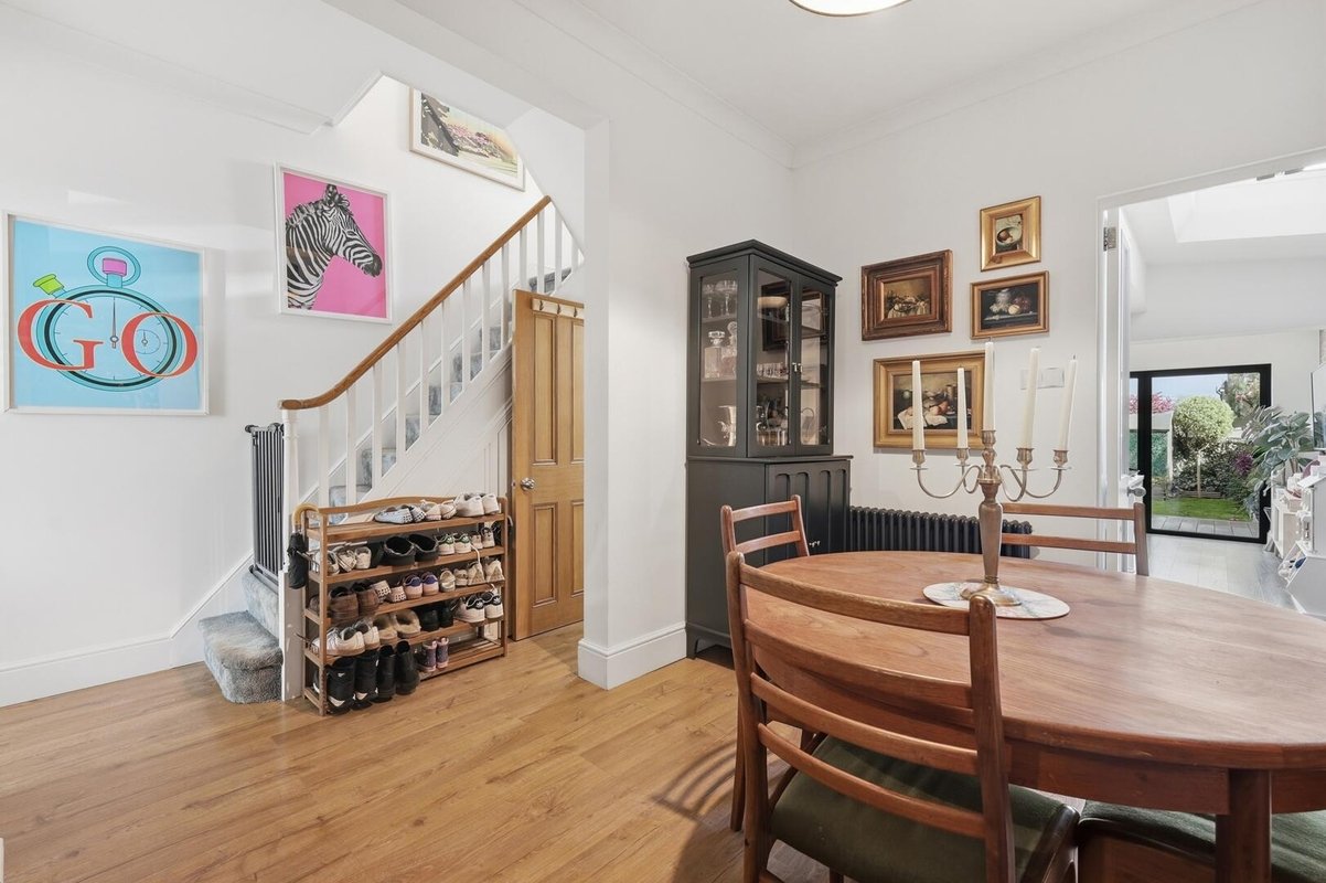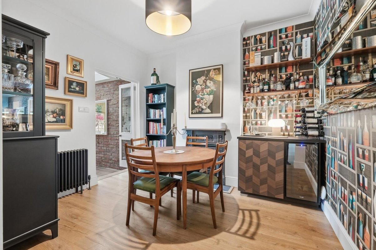 Positioned on the tree-lined Wellesley Road, this characterful Victorian home is just a short stroll to Wanstead's vibrant High Street (0.2 miles) and both Wanstead and Snaresbrook Station (0.4 miles and 0.3 miles respectively). Once through the front the space offered and the standard of accommodation can be fully appreciated. The welcoming entrance hallway with useful guest cloakroom serves two reception rooms. The stylish and elegant sitting room boasts a working fireplace with cast iron with bespoke cupboards and shelving to either side providing good storage. The large, shuttered bay window ensures the room is flooded by natural light. The hallway is open plan to the dining room, also boasting a fireplace and plenty of space for more formal dinner parties.