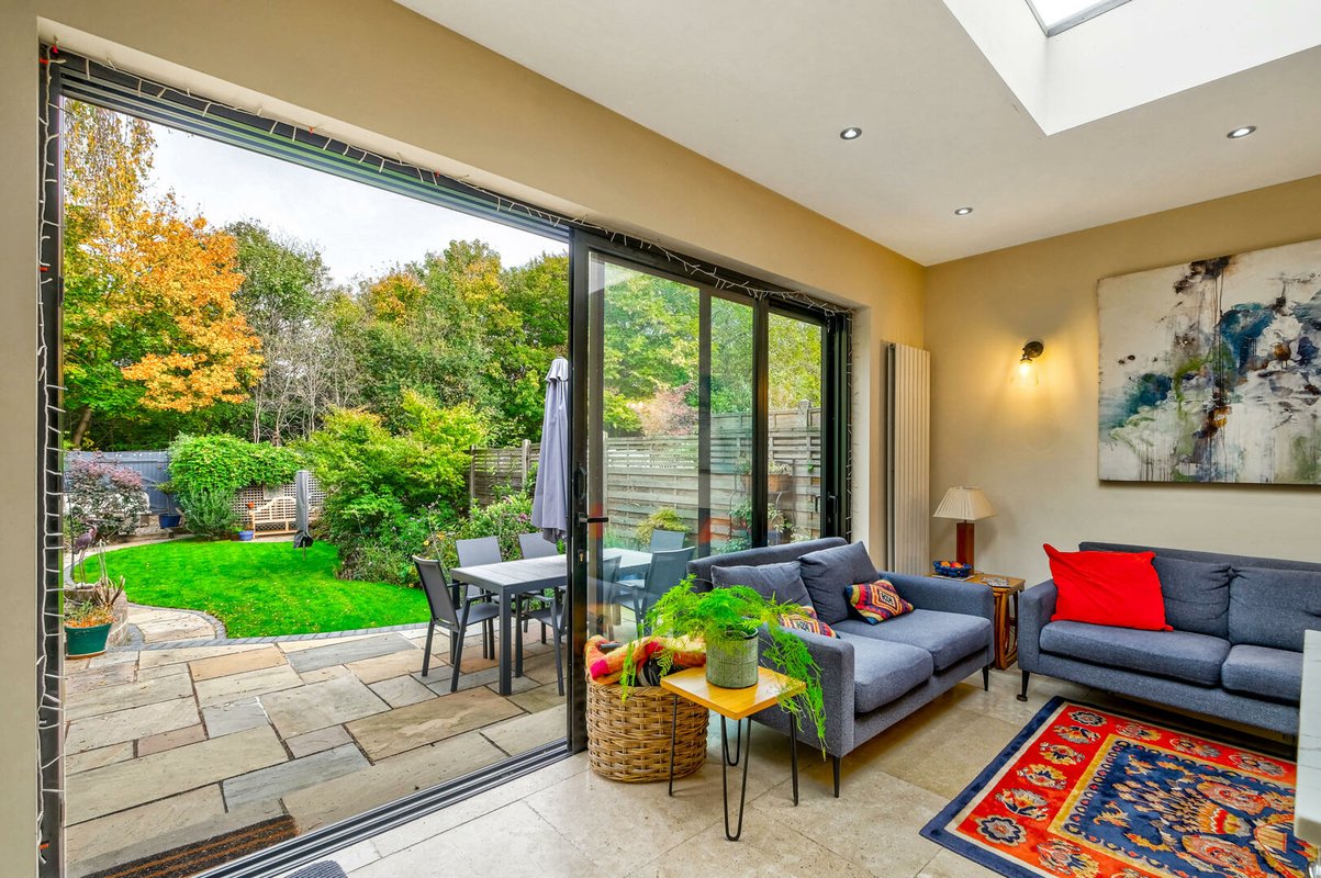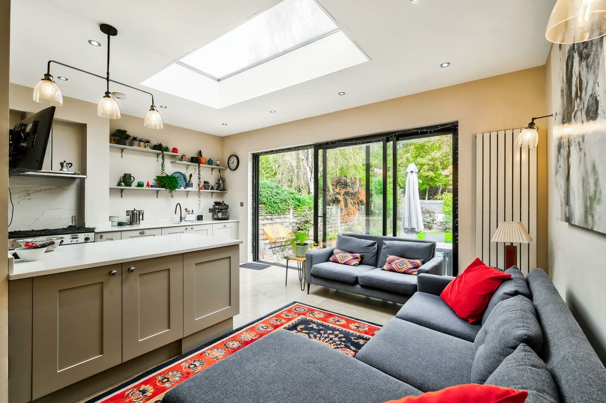 To the front of the property, a spacious formal lounge serves as a superb reception room, centred around a striking fireplace that anchors the space beautifully. A convenient guest W.C. is located just off the hallway, ideal for everyday practicality. To the rear, the home opens up into a show-stopping kitchen/dining/family room - thoughtfully extended and designed to preserve a sense of separate zones, the original dining room has been seamlessly blended with the rear extension via wide openings that maintain architectural definition. The extension has an added benefit of a living roof, which improves insulation, enhances biodiversity and improves air quality.