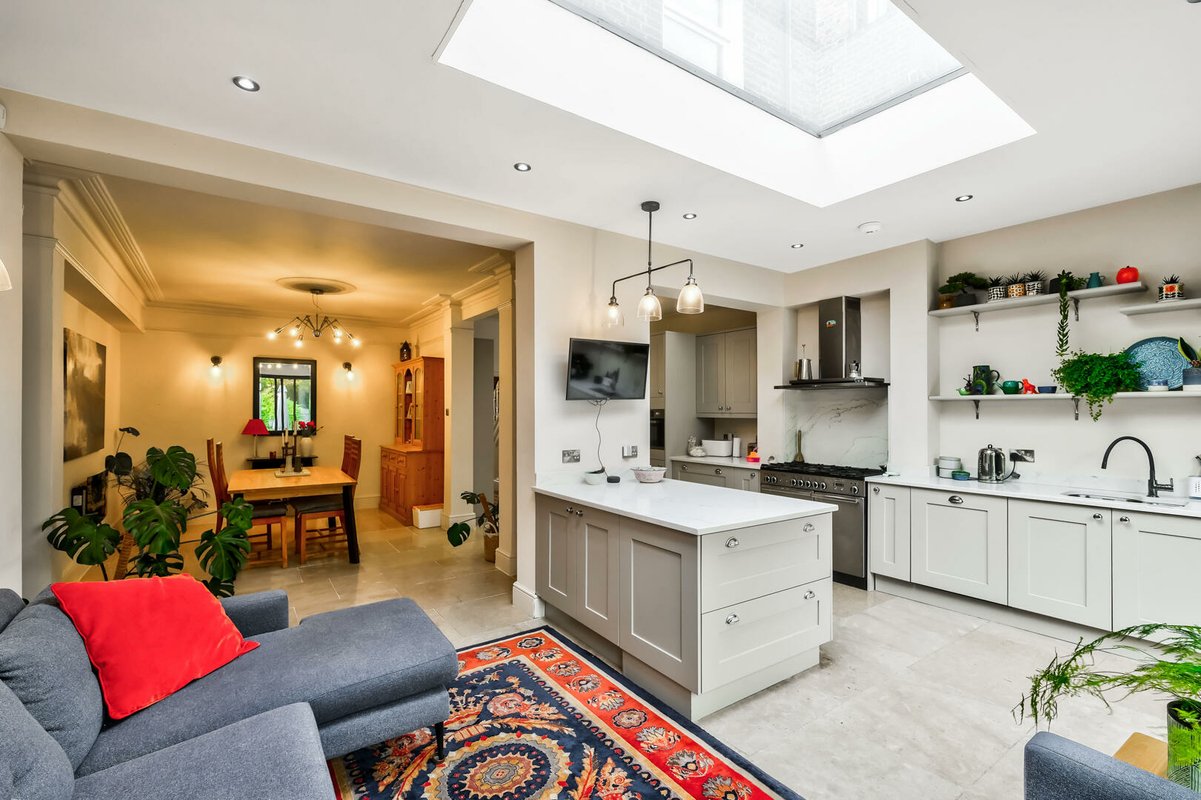 A striking example of Edwardian architecture, this substantial four-bedroom family home immediately impresses on approach, with its elegant double-height bay window inset with wooden double-glazed casement windows, bespoke café style shutters, crisp white frontage and charming original front door sheltered by a traditional canopy porch. Once inside, the sense of grandeur continues. A wealth of period features including original panelled doors, ceiling roses, high ceilings, period-style radiators, fireplaces and picture rails, create a warm yet refined atmosphere that celebrates the home’s heritage while offering all the comforts of modern family living.
