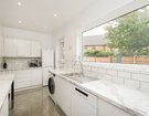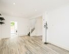 The ground floor features a spacious open-plan living and dining area, complete with practical understairs storage, ideal for coats, shoes, and bags. This flows seamlessly into a contemporary rear kitchen, bathed in natural light through a large picture window overlooking the garden. The kitchen comes fully equipped with integrated appliances including a washing machine, dishwasher, microwave, oven, gas hob, extractor fan, fridge/freezer, and built-in waste bin, along with modern combination power and USB sockets for added convenience.