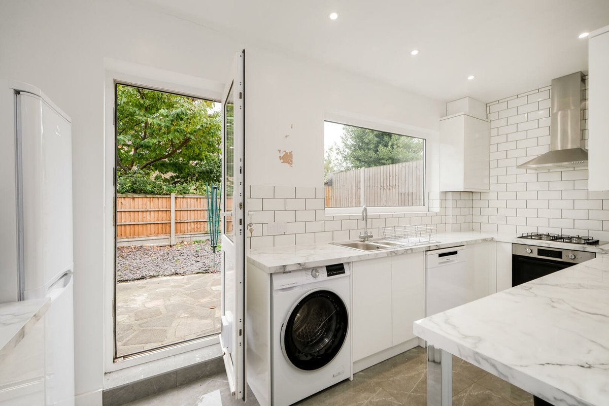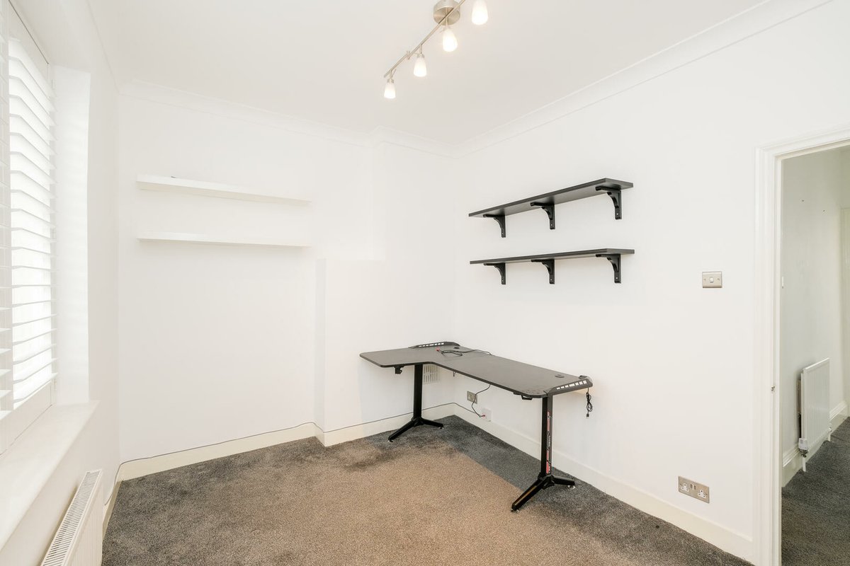 The low-maintenance rear garden provides a pleasant outdoor space, perfect for drying laundry or enjoying the summer months, and benefits from secure side access – ideal for bike storage or easy disposal of household waste. Residents' permit parking is available on street, with restrictions in place Monday to Friday.