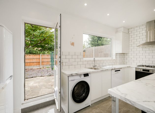 The low-maintenance rear garden provides a pleasant outdoor space, perfect for drying laundry or enjoying the summer months, and benefits from secure side access – ideal for bike storage or easy disposal of household waste. Residents' permit parking is available on street, with restrictions in place Monday to Friday.