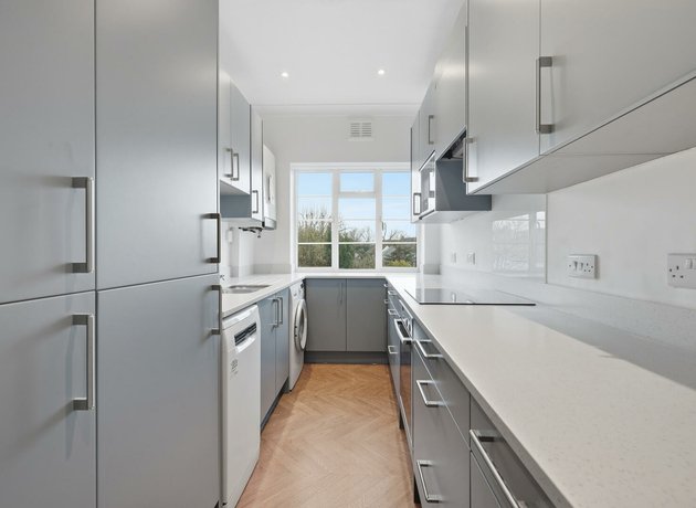 Set on the top floor of this sought after Art-Deco development, the apartment benefits from peaceful living with no overhead neighbours and beautiful views across immaculately kept communal grounds, enjoyed from a private balcony.