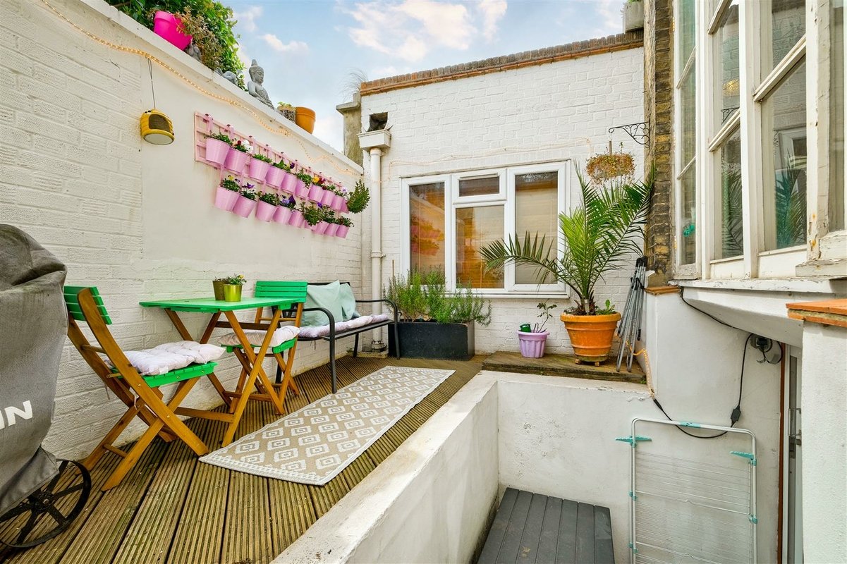 Venturing downstairs, you will discover a unique and versatile living space which is currently laid out as an office/second reception room with the bedroom area set behind sliding doors for added privacy. There is also a dressing area and a modern, fully tiled shower room. A private tiered terrace and patio area can be accessed via the large sliding doors on the lower ground floor.