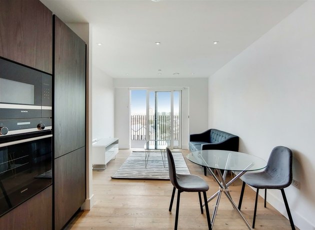 Slick, stylish, and seriously well-connected, this 10th-floor apartment is located in one of SW8’s most exciting modern developments. Perfectly placed in Zone 1, just 0.3 miles from Vauxhall Underground & Rail Station in one of London’s fastest-rising hot spots, you're moments from both The City and the buzz of the West End. Whether it's commuting, catching up over cocktails, or late-night art shows, everything London has to offer is right on your doorstep. The apartment's open-plan living space has been carefully crafted for both style and function. The kitchen features integrated appliances and crisp finishes, perfectly suited to both relaxed brunches and entertaining. Stylish brown wood cabinetry is complemented by a cream worktop and flows seamlessly into the open-plan lounge/diner, which opens onto a generous balcony boasting impressive views across the London skyline. The spacious double bedroom is filled with natural light and benefits from fitted wardrobes and double doors opening to a Juliette balcony. The hallway offers excellent built-in storage, whilst the bathroom is finished to a high standard with large cream tiles, striking black fittings, a full-size bath, an overhead rainfall shower and an additional handheld shower. This exclusive tower offers 24-hour concierge, CCTV, cycle storage, and audio-visual entry systems for complete peace of mind. Residents also get VIP access to the club lounge, gym, pool, sauna, and steam room at the neighbouring Keybridge Lofts. When the sun's out you can relax on two shared roof terraces - one conveniently located on your floor, and another tucked away on the fifth for a quiet retreat.