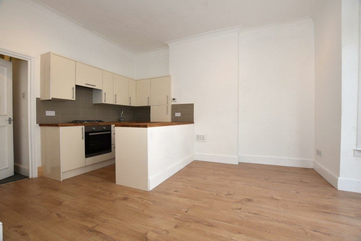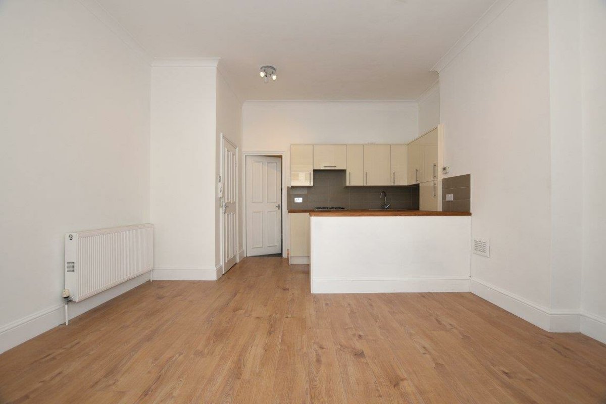 The property features an open plan kitchen/reception room with large bay window, double bedroom and a shower room.