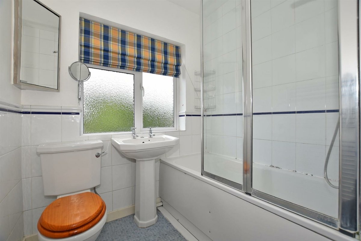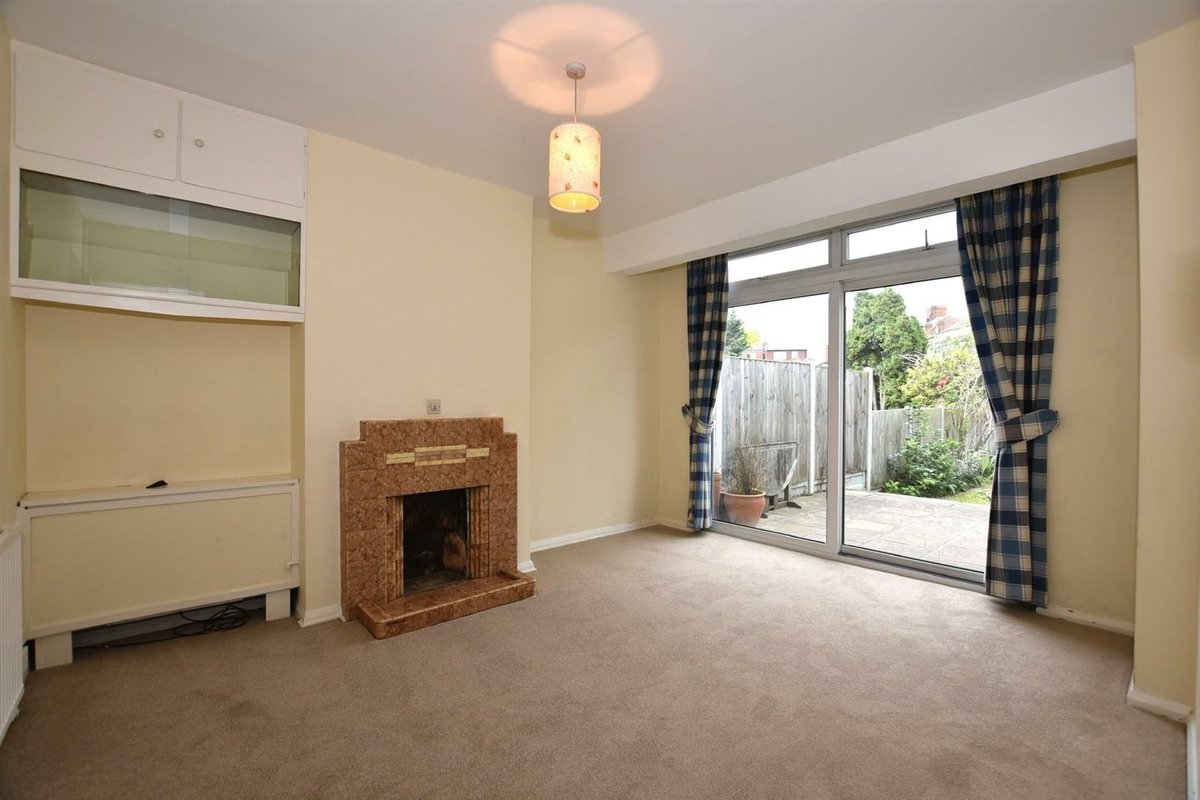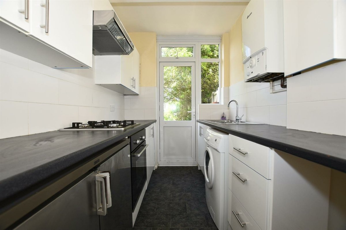 The property retains its traditional layout, with the ground floor comprising a formal sitting room, a dining room with large doors opening onto the rear garden, and a classic galley kitchen featuring dual runs of cabinetry. The generous plot and favourable westerly aspect provide ample potential to reconfigure or extend the rear of the property (STPP), creating a larger open-plan kitchen/dining/family space should one desire.