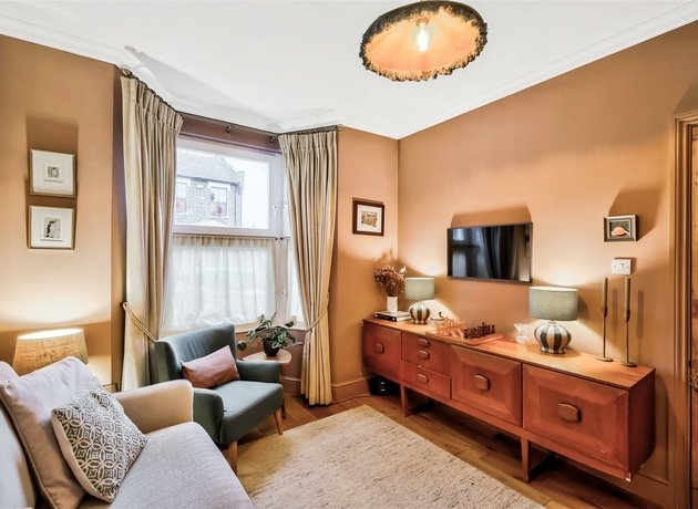This mid-terrace, brick-fronted property is ideally located close to the vibrant cafes, bars, and shops of the iconic ‘Arches’ area, and is just a stone’s throw from the expansive green space of Wanstead Flats—perfect for outdoor activities such as walking, running, cycling, or picnicking on sunny days. Proudly positioned within the rapidly developing Forest Gate neighbourhood, this attractive home is just moments away from local gems like the Wanstead Tap bar, Joyau Wine Bar, Pretty Decent Beer Co and Wild Goose Bakery all within 0.2 miles. The property benefits from excellent transport links, with Wanstead Park Overground Station just 0.5 miles away and the Elizabeth Line at Forest Gate Station a mere 0.7 miles on foot, making commuting a breeze. Additionally, the area is part of the Low Traffic Neighbourhood Scheme, ensuring a more peaceful and sustainable environment. As you step inside, the property retains many original period features, including stripped wood doors, classic school-style radiators, and beautiful exposed floorboards, evoking the home's Victorian heritage while seamlessly blending with modern touches. The house is painted in premium Farrow & Ball tones throughout. The charming front reception room boasts a large bay window, inviting an abundance of natural light to flood the space and create a warm, welcoming atmosphere. At the rear of the property, a thoughtful extension has created a generous and sociable kitchen/dining area that stretches nearly 26 feet in length. The stylish kitchen is fitted with a contemporary range of Shaker-style cabinets, complemented by contrasting countertops and integrated appliances. Seating at the rear offers a relaxed spot to unwind. Double French doors open directly onto the rear garden and newly fitted weather proof decking, creating an ideal flow for indoor-outdoor living and making the side return a perfect place for entertaining. On the ground floor, a practical utility cupboard is conveniently tucked away to house your white goods, and a beautifully designed shower room features chic grey tiles, a large, full-length mirror, and stylish mosaic flooring, all adding a touch of luxury while maintaining the home’s period charm. Upstairs, you’ll find two generously sized double bedrooms, with the principal bedroom featuring fitted wardrobes for added storage. There is potential for further expansion into the loft (subject to planning permission), offering the opportunity to create additional living space if desired. The lovely rear garden is a private retreat, combining areas of lawn, newly installed weather proof decking for entertaining, Hydrangea Annabelles in the garden and flower beds, with a convenient shed at the far end for additional storage. This peaceful outdoor space is perfect for relaxing or hosting gatherings and attracts morning sunshine. The front garden features original Victorian tiles and has been cleverly landscaped to complement the exterior of the house.