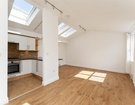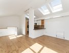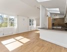 A fully tiled bathroom with over-bath shower completes this level. Upstairs, a bright and spacious open-plan living area is enhanced by large windows, skylights and a vaulted ceiling, creating a wonderful sense of light and volume.