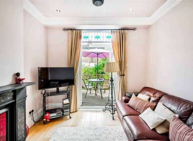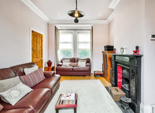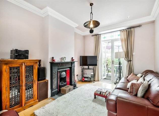 Step across the charming black and white mosaic pathway, framed by a manicured hedge and classic brick wall, and into the elegant central hallway of this double-fronted Victorian home which is both beautifully laid out generously proportioned. Either side of the hallway you’ll find two spacious reception rooms perfect for hosting, lounging, or creating a dedicated work-from-home space. The living room flows effortlessly out to a raised deck, overlooking a lush, south-facing garden that’s bursting with established, cottage-style planting.