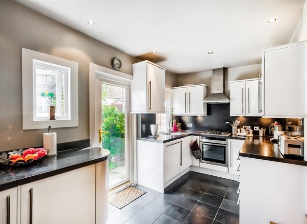 To the rear, the sleek, modern kitchen also opens directly onto the garden, making al fresco dining a breeze. There’s access to a handy cellar from the kitchen ideal for stashing bikes, wine, or all those extras you want out of sight. Upstairs, you’ll find three bedrooms, off of the characterful split level landing, the generous principal bedroom complete with en-suite shower room. The main bathroom is fully tiled, modern, and ready for busy mornings or long evening soaks. With scope to convert the loft and extend to the rear (STPP).