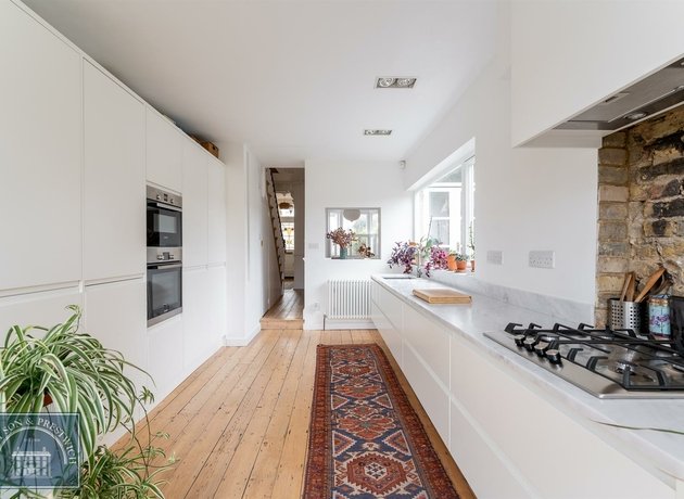 To the first floor there are three good size bedrooms featuring fireplaces and exposed brick walls and a family bathroom. The property also enjoys a huge amount of natural light.