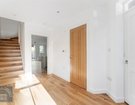 Once inside the house a spacious entrance hall gives way to a generously sized utility room with a large cupboard that houses a washing machine and condenser dryer, sink and handy W.C. An impressive open plan kitchen/living/dining room to the rear offers a fantastic living and entertaining space with a handy storage cupboard and large bi-fold doors overlooking the landscaped low maintenance rear garden. The attractive shaker style kitchen boasts composite worktops, breakfast bar and a range of integrated Neff appliances including fridge/freezer, dishwasher induction hob, oven, microwave and grill. The home is heated throughout by underfloor heating, fuelled by a ground source heat pump with backup emersion ensuring the home is not only efficient but cost affective. Light solid oak flooring runs throughout the entire property.