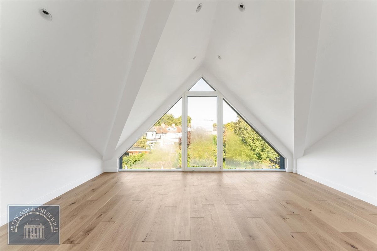 Ascending the solid oak staircase to the first floor there are two double bedrooms on offer both of which benefit from an en-suite shower and sash windows and fitted wardrobes with the larger room further benefiting from wall-to-wall fitted wardrobes and a Juliette balcony. The second floor offers two further bedrooms and a contemporary bathroom both with impressive vaulted ceilings and one with a Juliette balcony, offering views over the incredibly leafy area of Aldersbrook.
