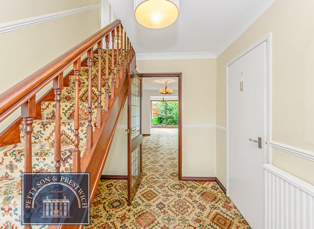 The ground floor opens into a spacious and welcoming entrance hall, with a conveniently positioned guest W.C. discreetly set away from the main thoroughfare. A striking through lounge/dining room, extending to an impressive 23’7, is enhanced by expansive floor-to-ceiling sliding doors that open directly onto the private rear garden, creating a seamless flow between indoor and outdoor living. Two separate access points lead through to an equally generous kitchen/breakfast room.